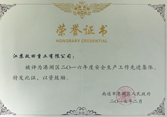 2月17日下午,港閘區(qū)政府召開《全區(qū)安全生產工作會議》,布置落實2017年安全工作,表彰2016年度安全生產工作先進集體,我公司獲評安全生產先進。